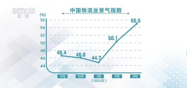 3月份中国物流业景气指数为55.5%,较上月回升5.4个百分点,连续两个月回升幅度超过5个百分点。从区域看,东中西部地区物流业景气水平均较上月有所回升。从企业规模看,大中小微型物流企业业务量均有增加。