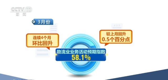 另外,从后期走势看,3月份物流业业务活动预期指数为58.1%,较上月回升0.5个百分点,连续4个月环比回升,显示出随着经济持续复苏,物流企业对行业将继续快速增长的信心较强。